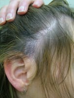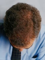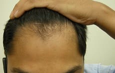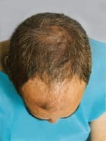 Pattern balding, as visible in the before photograph, causes hair to recede from the front and hair thinning to spread from the scalp outward. This condition can add unwanted years to your appearance and make it difficult to get the hairstyle you want. Hair follicles are few and far between, resulting in characteristic thinning.
